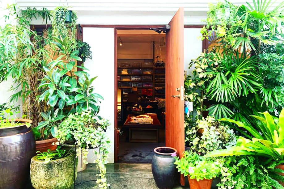長崎の眼鏡橋近く、ししとき川沿いの小さなお店。看板はありませんが店前いっぱいのグリーンが目印です。